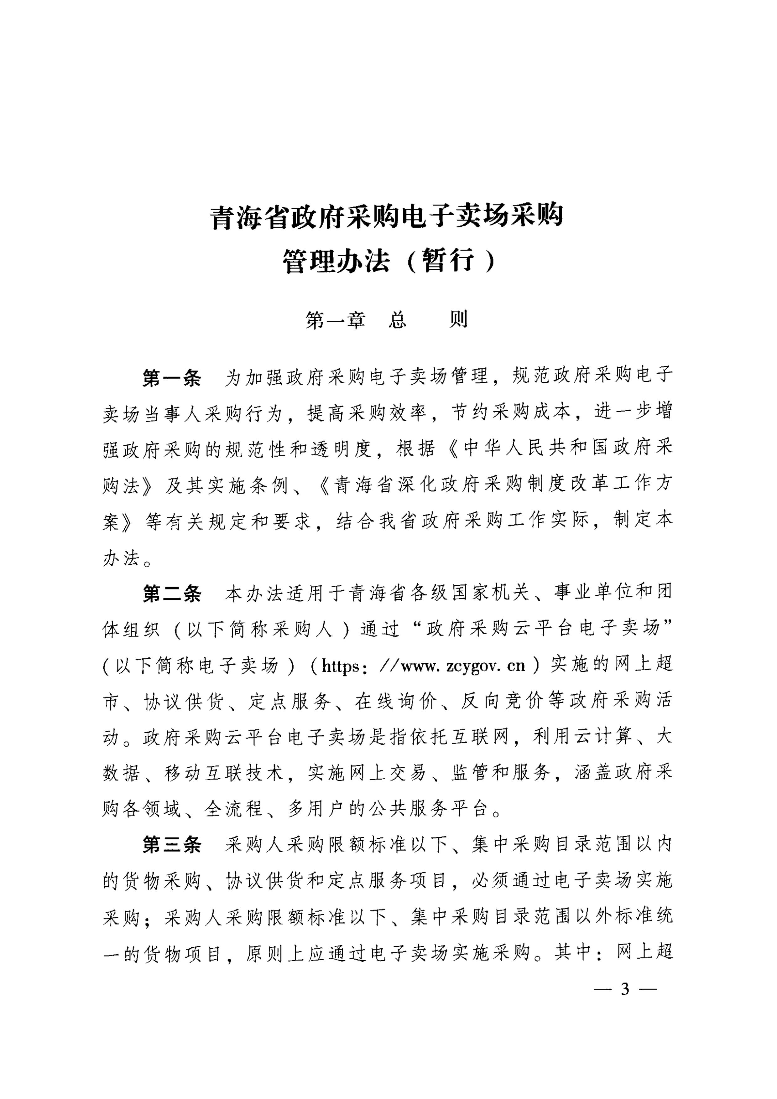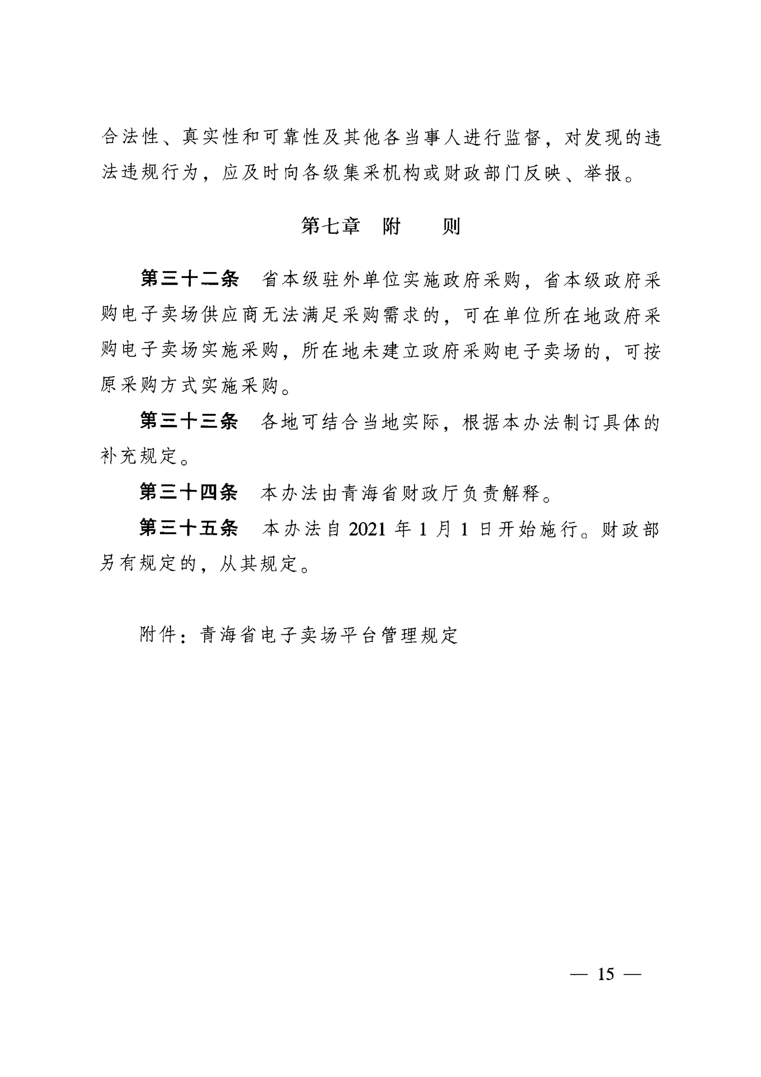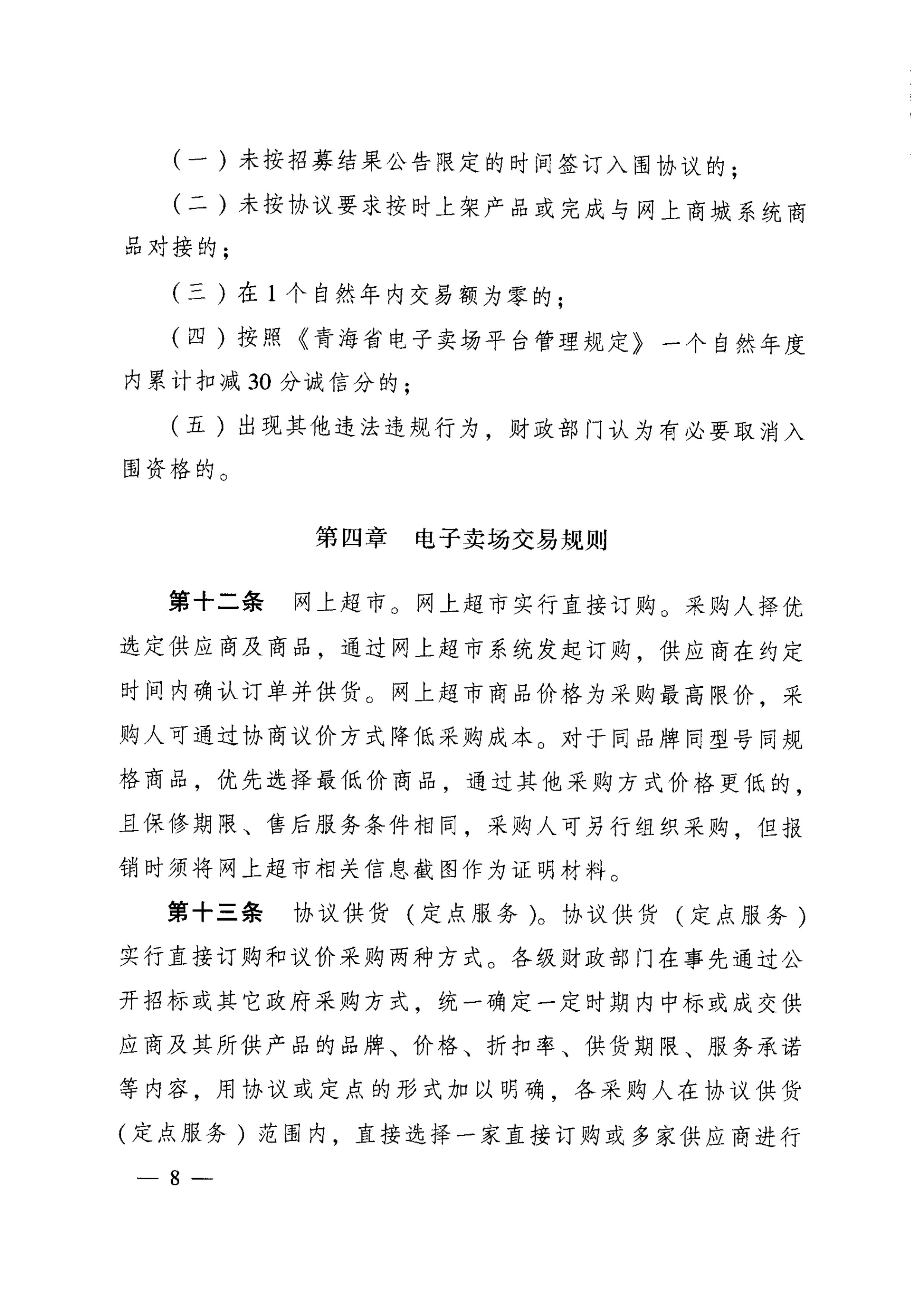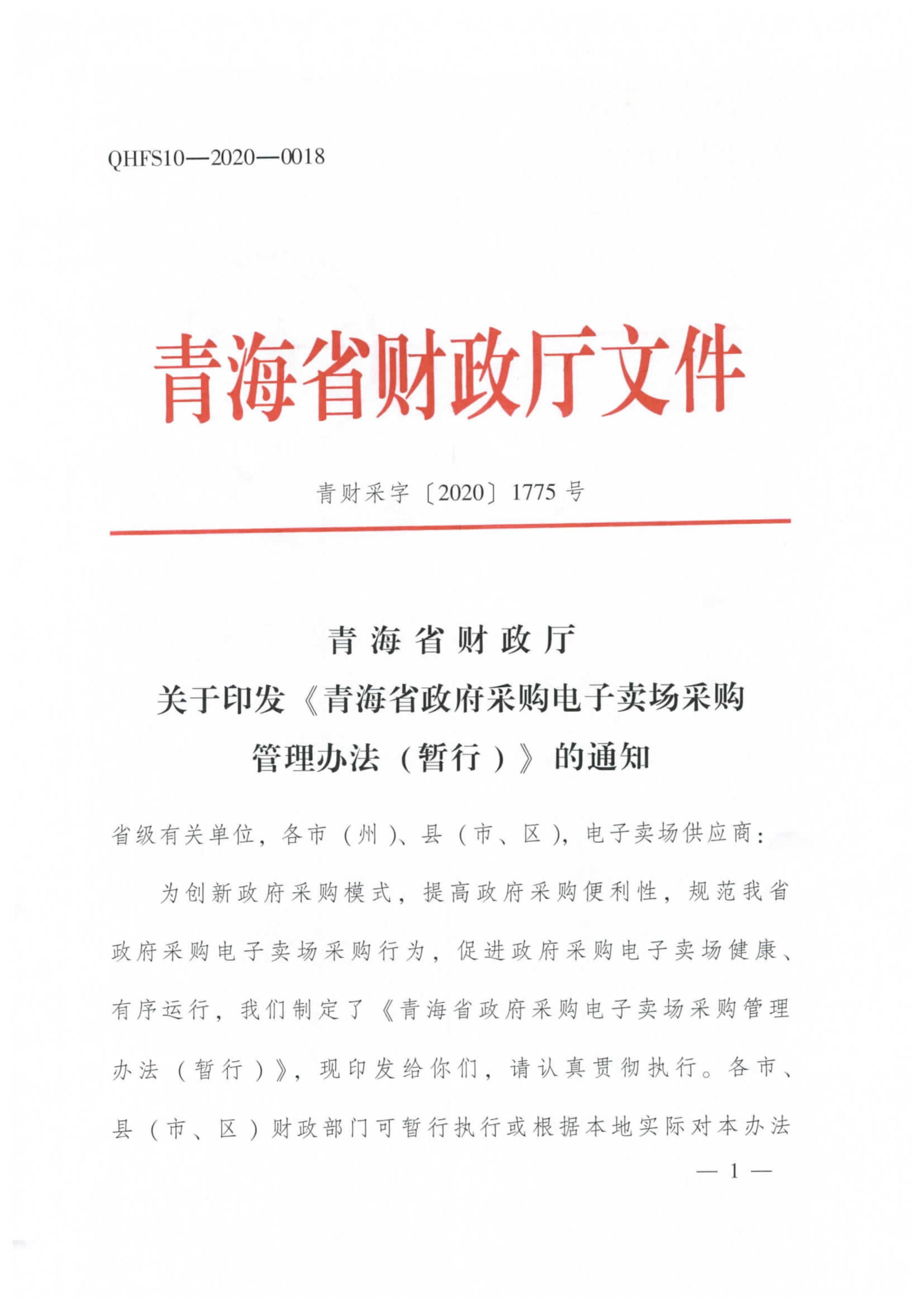 青海省财政厅关于印发《青海省政府采购电子卖场管理办法(暂行)》的通知